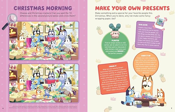 18 crafts and activities to celebrate Christmas with Bluey? Hooray! Use this craft book to create your own advent calendar, build your own Christmas gnome village, make festive decorations for your home, and more!
