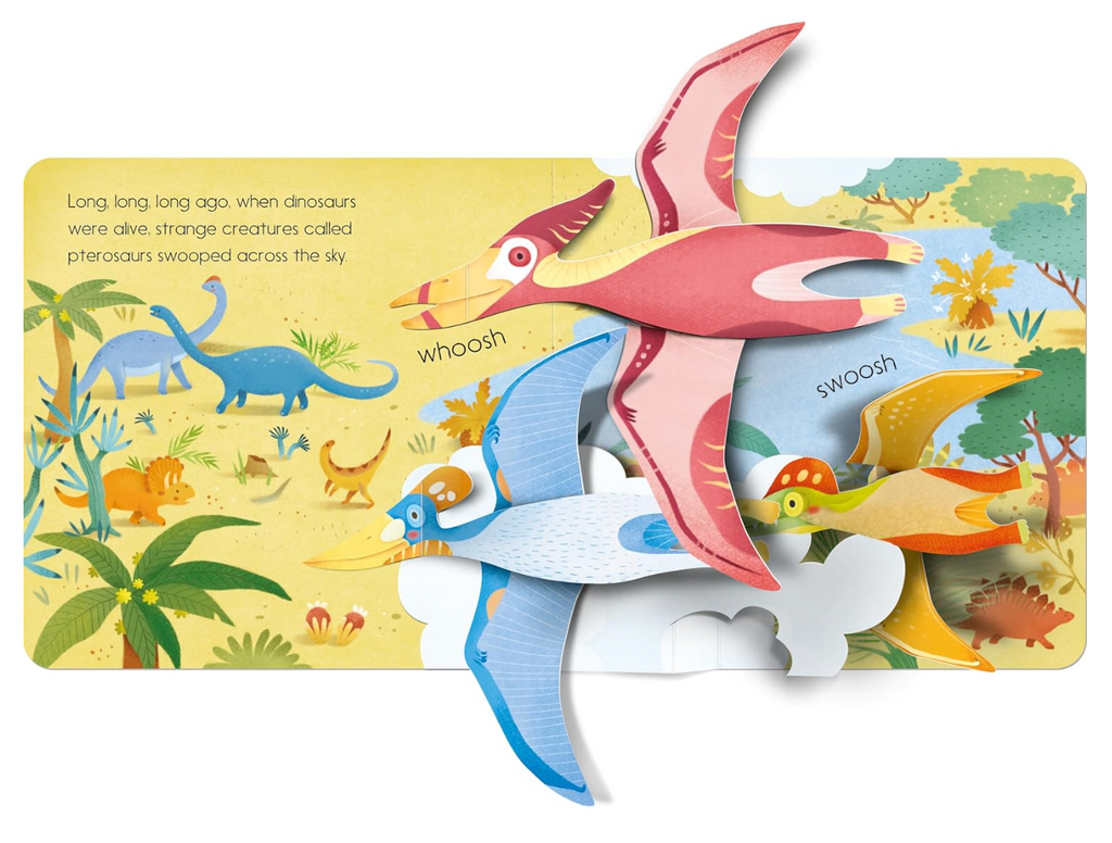 Beware! Open this book and all kinds of dinosaurs will pop out - huge ones, tiny ones, hungry ones, and a very, very noisy one.