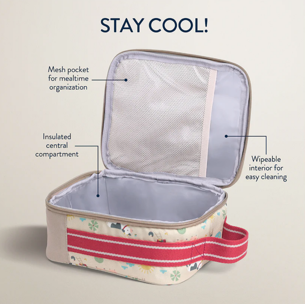 Ace lunchtime with the Itzy Lunch Box™. Made of sturdy, wipeable fabric, this adorable insulated lunch box features a side water bottle pocket and two additional pockets for mealtime organization and convenience. Bon appétit!