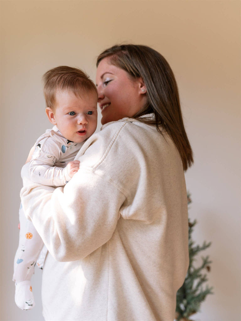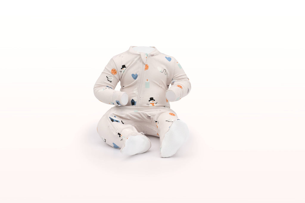 Front zipper for dressing and a separate inseam zipper for quick and easy diaper changes. Simple & intuitive design means no snaps and no cold air drafts - babies stay covered and comfortable. Premium bamboo is super soft & breathable. Little extra details like food-grade silicone on grippy foot bottoms (3-6M to 18-24M), no-scratch fold-over mitts (NB & 0-3M) and neck protector means the best product for your clients.
