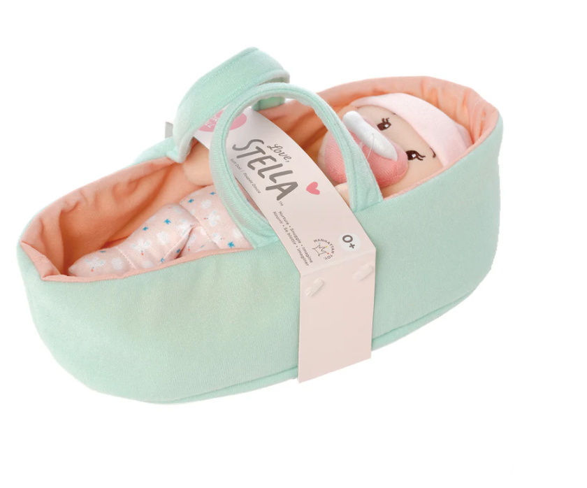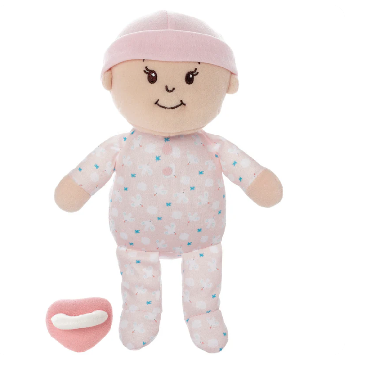 The ultimate first baby doll set! Includes a 100% soft doll that offers magnetic pacifier play, a sittable design, and a soft bassinet.