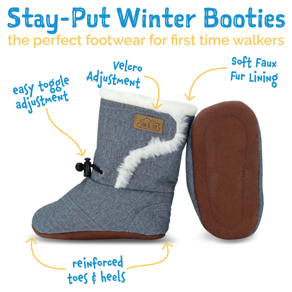 Stay-Put Winter Booties keep little feet warm on chilly days!
