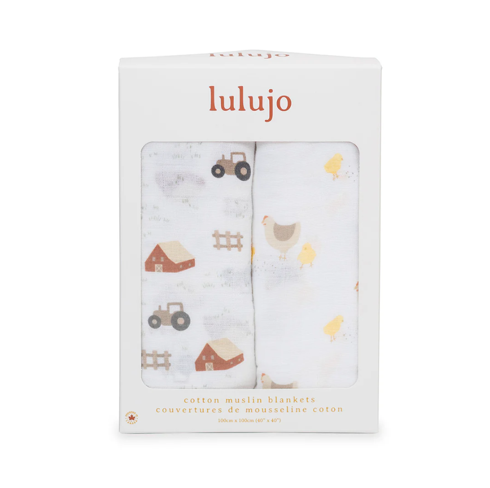 2pk Cotton Muslin Swaddles - Barnyard + Hens