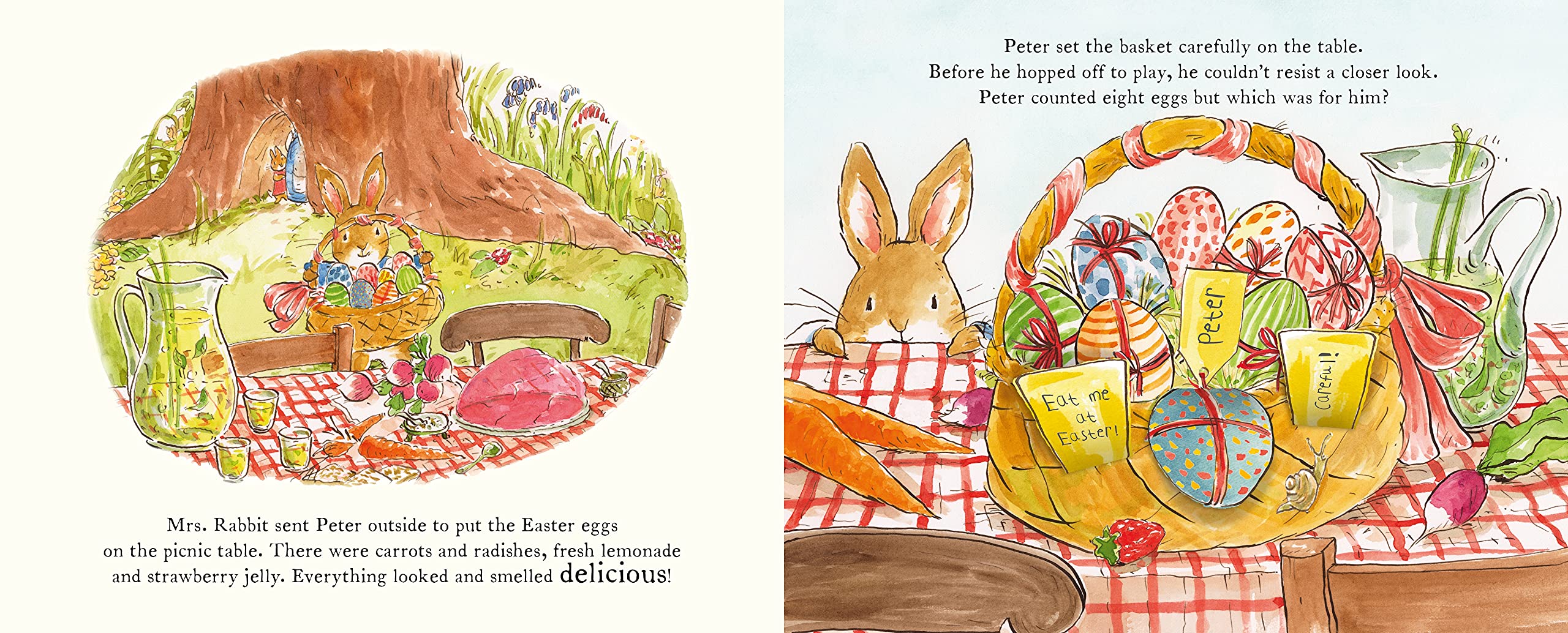 But when Peter knocks over the Easter basket full of eggs, he has to go on a hunt to find them all.