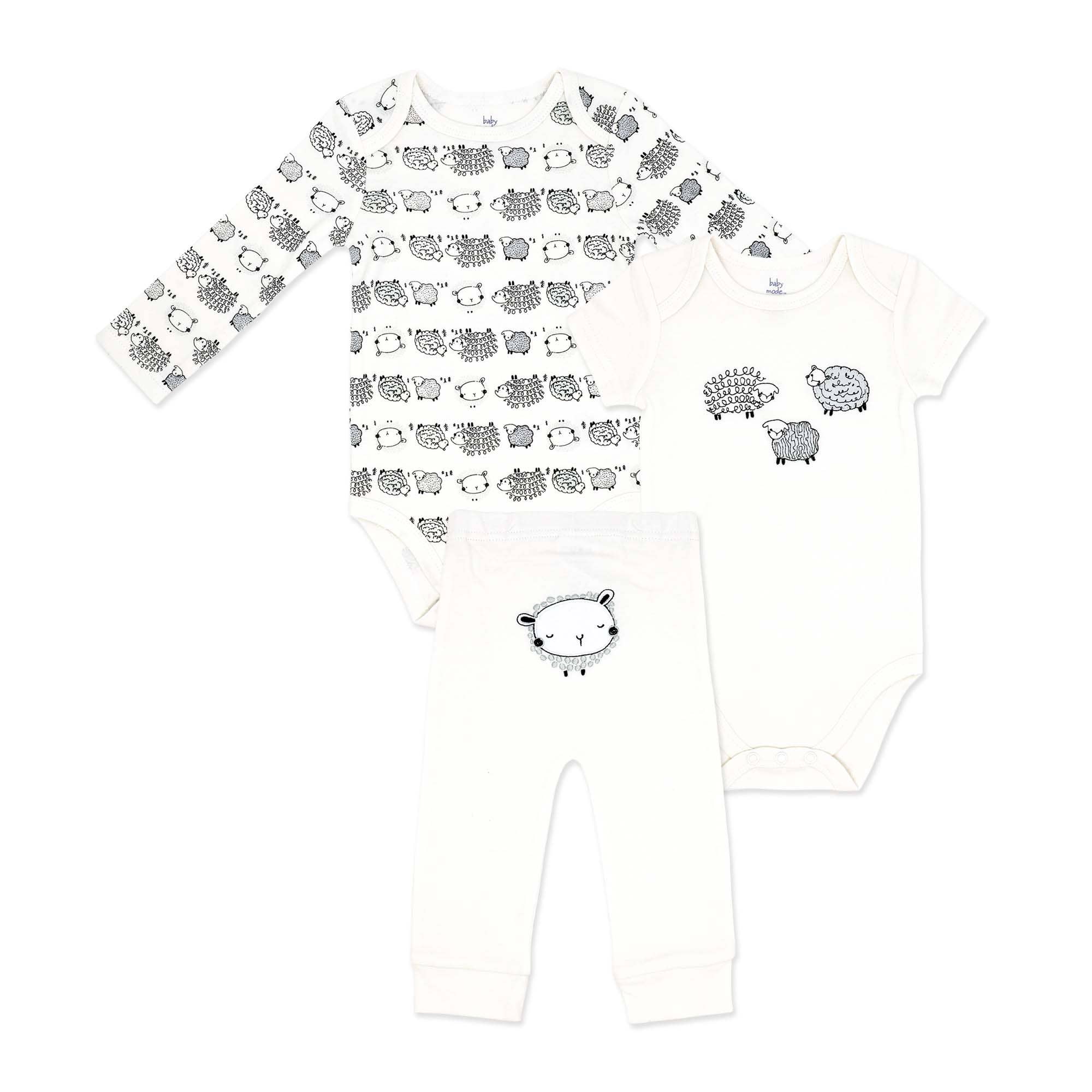 100% Cotton Set includes: Short Sleeve Bodysuit, Long Sleeve Bodysuit and Pant